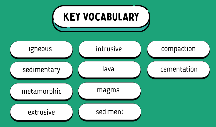 Practice these key words often. This will help you remember them and feel more confident when talking about rocks and the rock cycle!